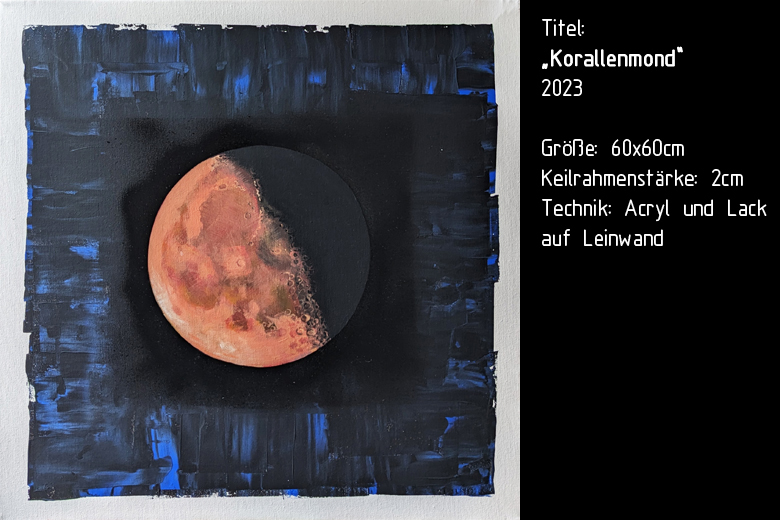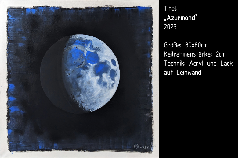 Ein Phase sehr langer, trüber Winterabende hat mich dazu inspiriert astronomische Objekte auch in Acryl auf Leinwand zu bringen - inspiriert von Mondfotografien anderer Astronomen habe ich hier versucht möglichst naturgetreue Strukturen mit ästhetischen Farbspielen zu kombinieren.
